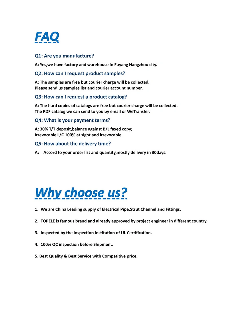 Το TOPELE EMT CONDUIT έχει σχεδιαστεί για την προστασία και την καθοδήγηση καλωδίων και αγωγών. Μπορεί να εγκατασταθεί είτε εκτεθειμένο είτε κρυμμένο.Αυτό το EMT CONDUIT είναι φτιαγμένο από προπαλβανισμένο χάλυβα και έχει μια οργανική επικάλυψη στο εσωτερικό.